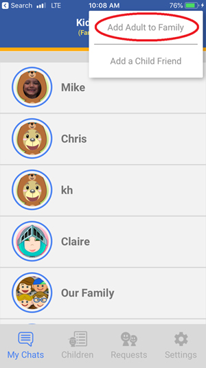 Use the KidiConnect™ smartphone app to invite your family to join KidiConnect™. Then, they can chat with your child too. Just follow these instructions if you want to add a new member to your family.
