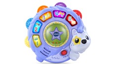 Get on board the Animal Adventures Ark by VTech®. Press the four light-up buttons to learn weather concepts, colors, and hear fun sing-along songs and classic melodies. The playset includes eight wobbling animals: tiger, hippo, giraffe, monkey, bear, alligator, bird and zebra that all store inside the ark. Drop the animals down the tunnel and the ark will count them to help your little one build counting skills. The ark features a turning starfish, a spinning helm, a peek-a-boo door and more. The pull cord lets your little explorer pull their animal friends around, then tucks away when they're done. Time to set off on an adventure!