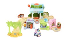 Get on board the Animal Adventures Ark by VTech®. Press the four light-up buttons to learn weather concepts, colors, and hear fun sing-along songs and classic melodies. The playset includes eight wobbling animals: tiger, hippo, giraffe, monkey, bear, alligator, bird and zebra that all store inside the ark. Drop the animals down the tunnel and the ark will count them to help your little one build counting skills. The ark features a turning starfish, a spinning helm, a peek-a-boo door and more. The pull cord lets your little explorer pull their animal friends around, then tucks away when they're done. Time to set off on an adventure!